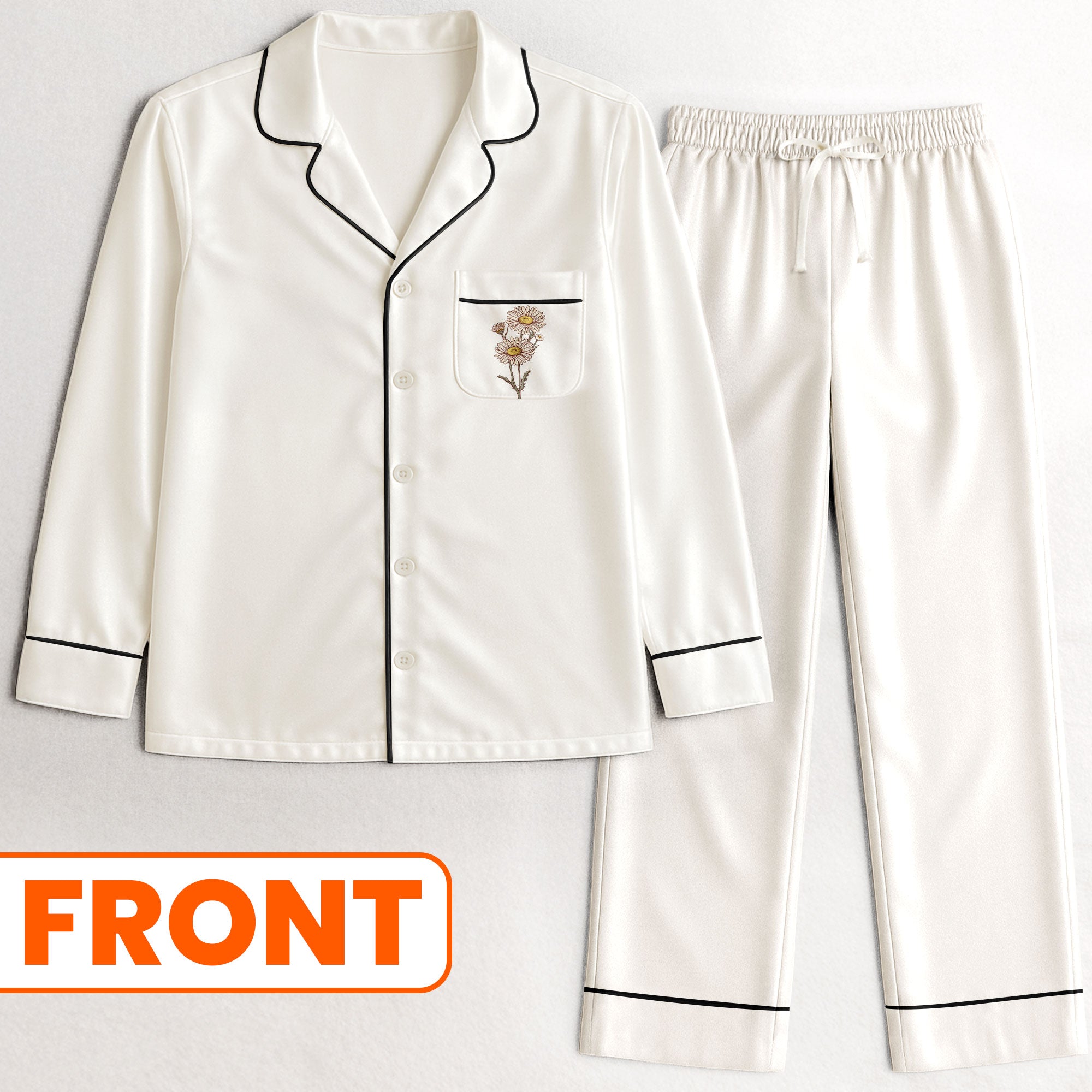 Step into a world of luxury and comfort with our Birth Flower - Personalized Satin Pajama Set. Made with care, this elegant satin pajama set is the perfect self gift. Enjoy the soothing touch of its satin fabric that invites a cozy slumber or a relaxed day at home. The birth flower embellishment is a unique touch, symbolizing growth, bloom, and individuality, much like the wearers themselves. This pajama set is perfect for birthdays, Christmas, anniversaries, or indeed any occasion when a bit of indulgence is in order.