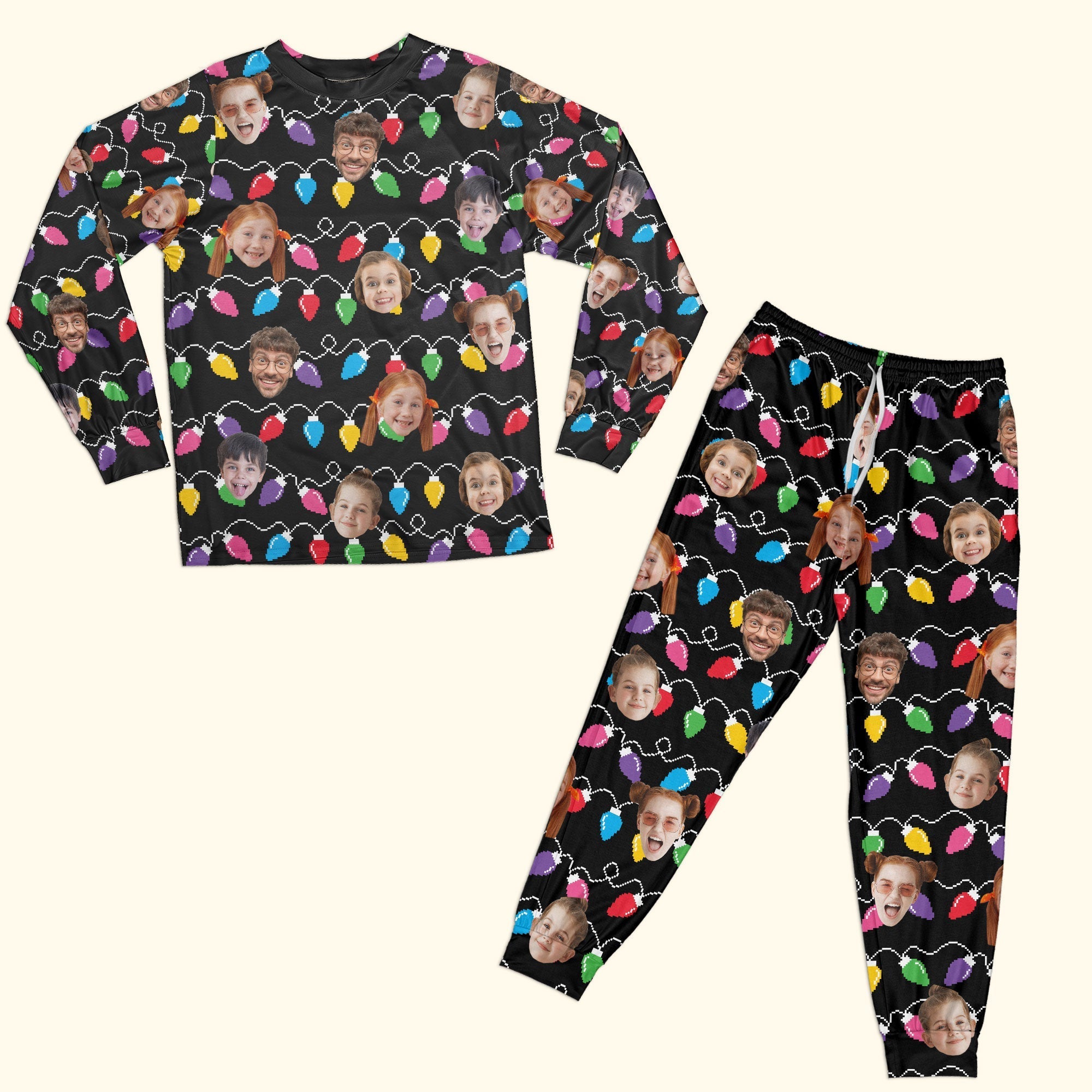Custom face christmas family silly xmas leds - personalized pajamas set, the perfect blend of festive cheer and personalized hilarity for the holiday season! Capture the spirit of merriment with this one-of-a-kind funny custom photo merry christmas pajamas set, designed to spread joy and laughter. Custom your faces or pet's faces, to make your xmas gift unforgettable with this personalized ugly sweater! Whether you're gifting it to your boyfriend, girlfriend, husband, wife, family members, friends, boss, or co-workers, this sweater is bound to be a hit at any christmas party or holiday gathering. Coordinate an adorable matching holiday pajamas set with these festive chill out pajamas featuring cute printed. Comes in sizes for dad, mom, boys and girls for a picture-perfect matching look during the holidays. Wearing this comfortable pajama family christmas pajamas, create family memories and extra fun during the holidays.