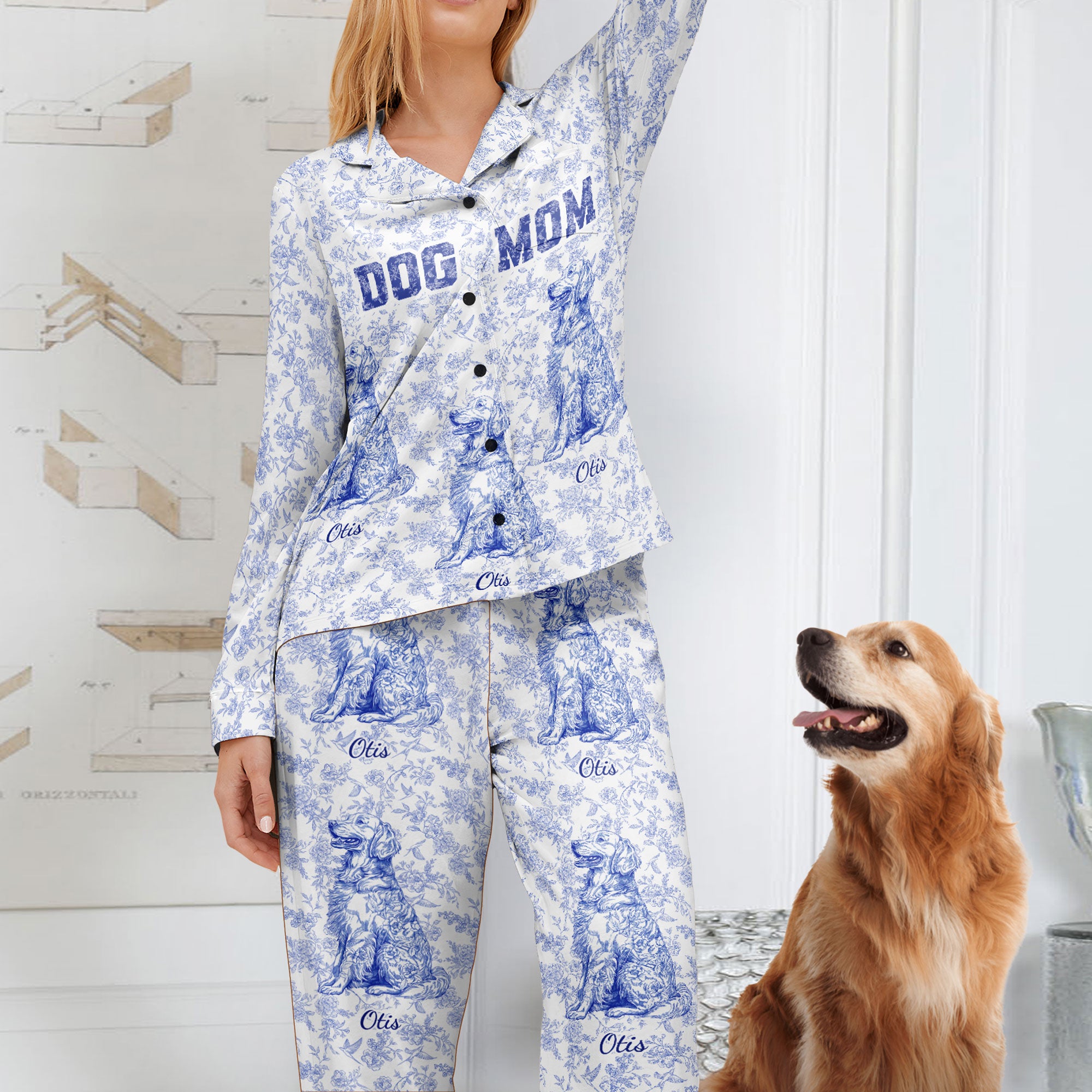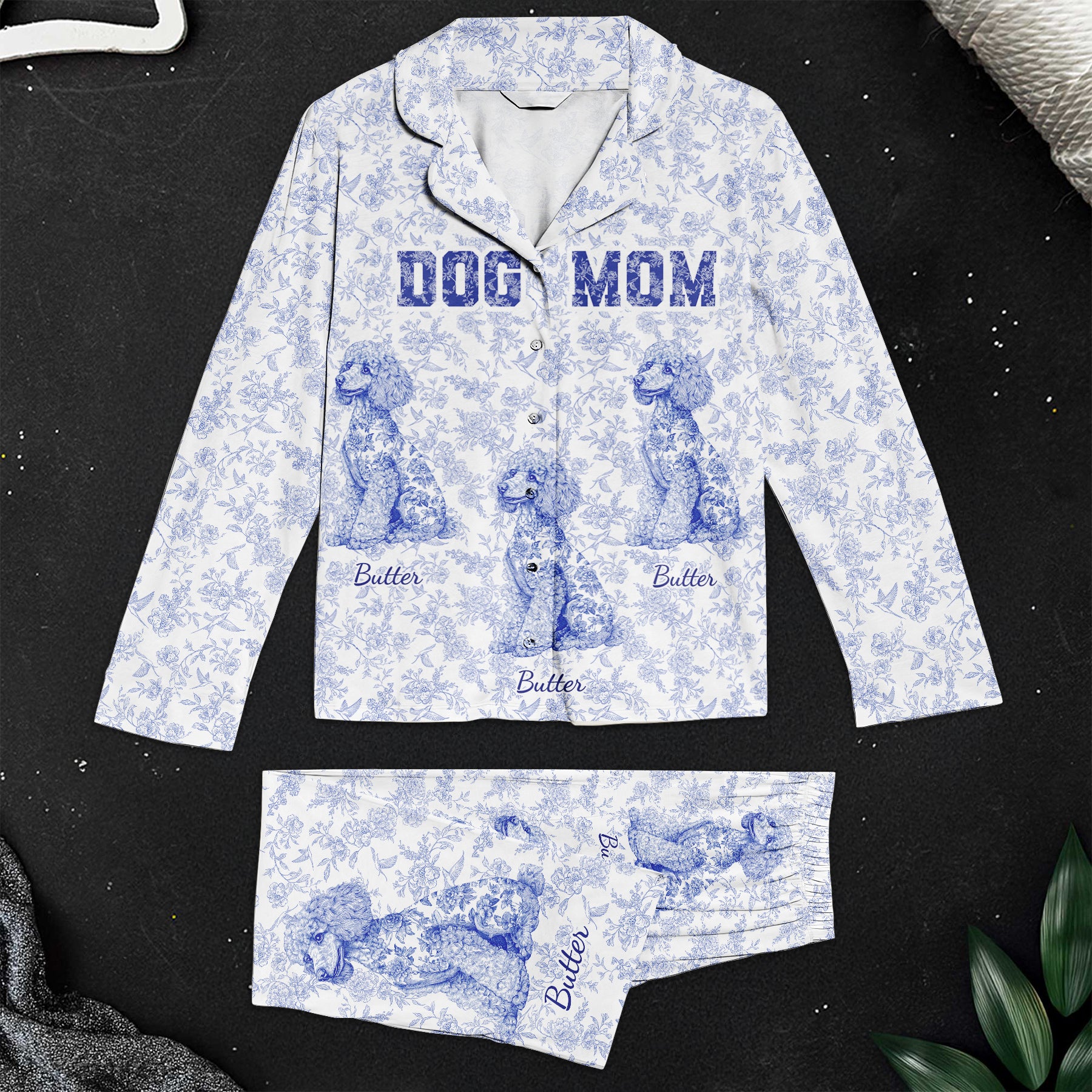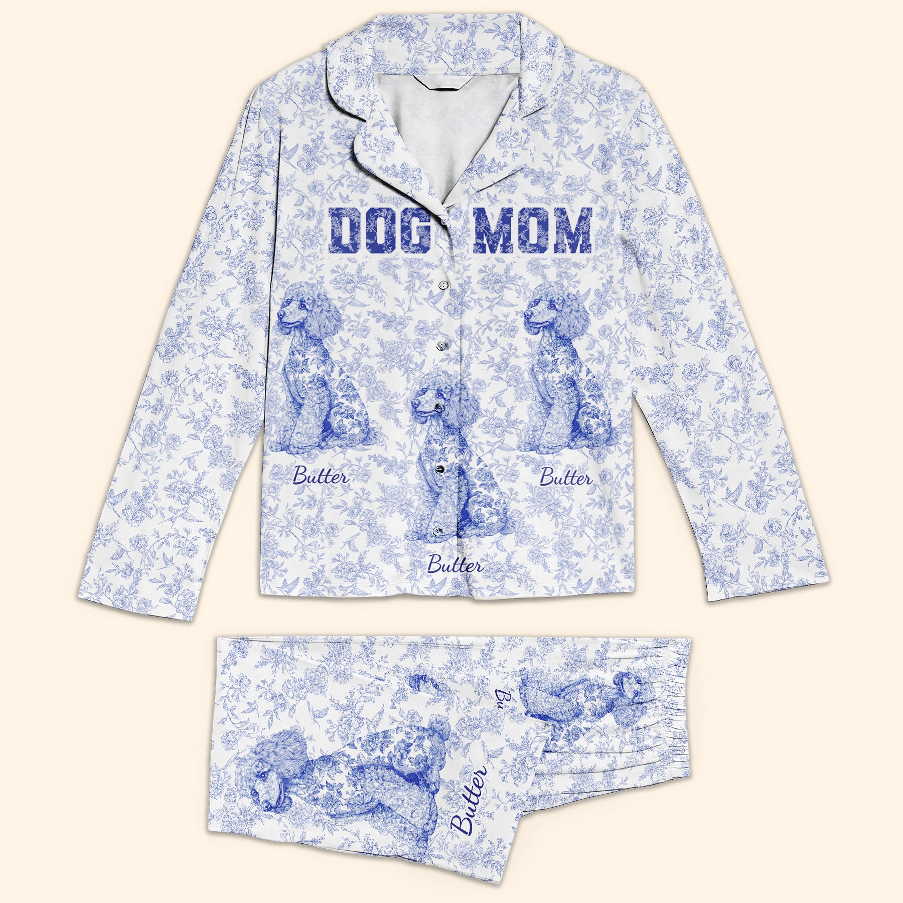 Introducing our Dog Mom Floral Toile De Jouy French Chinoiserie - A personalized button-up pajamas set that sweeps you away to the warm corners of a cozy home. This ensemble is jubilantly designed for all the proud dog moms out there, showcasing a bond stronger than any leash. It's a perfect wearable emblem of your fondness towards your furry companions and the wonderful role you play in their lives. Marked with the label of 'Dog Mom', this piece subtly resonates with the thrill and joy of pet parenthood - it's more than just an article of clothing, it's a mentality!