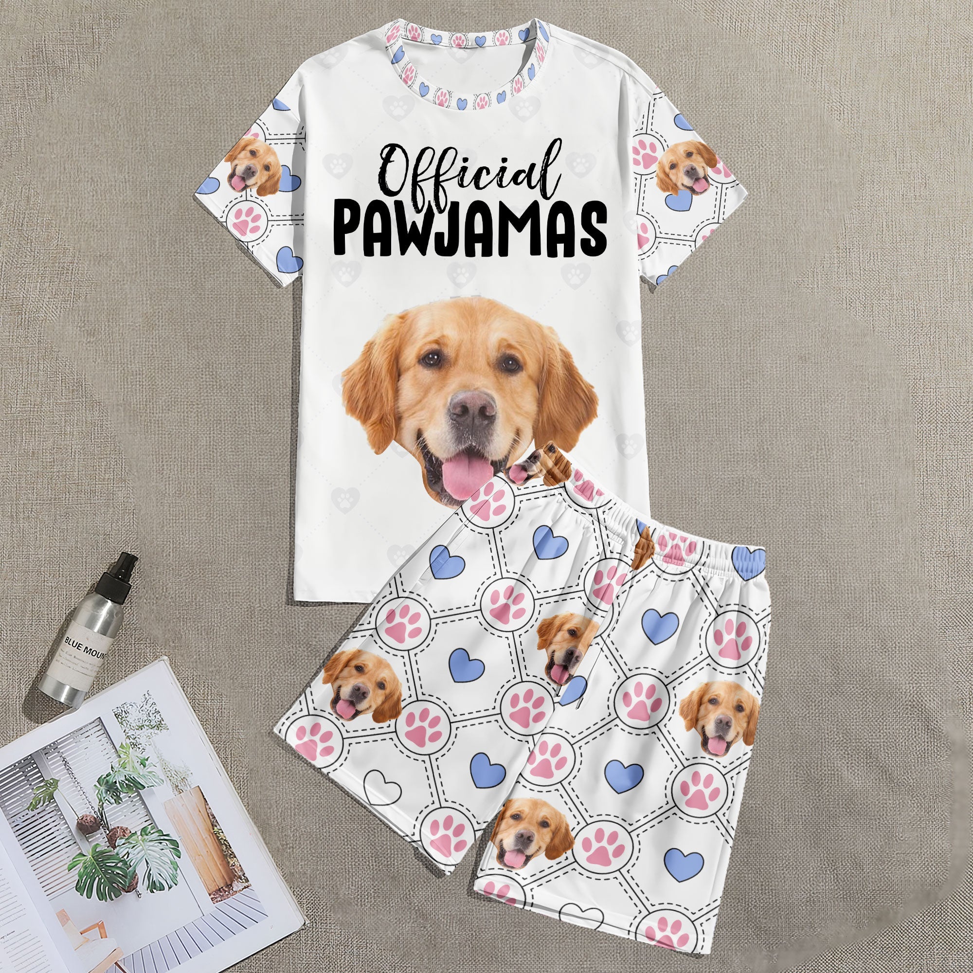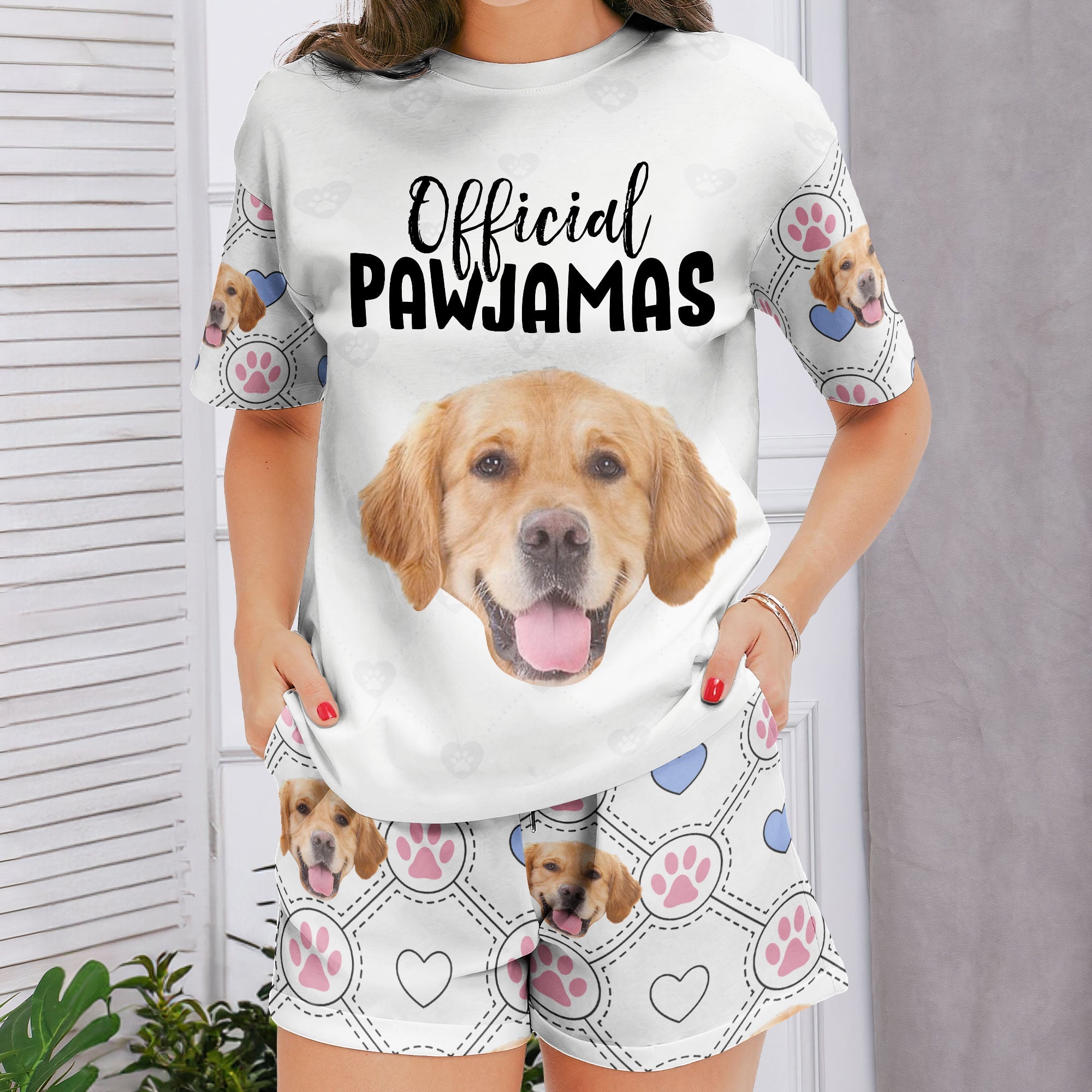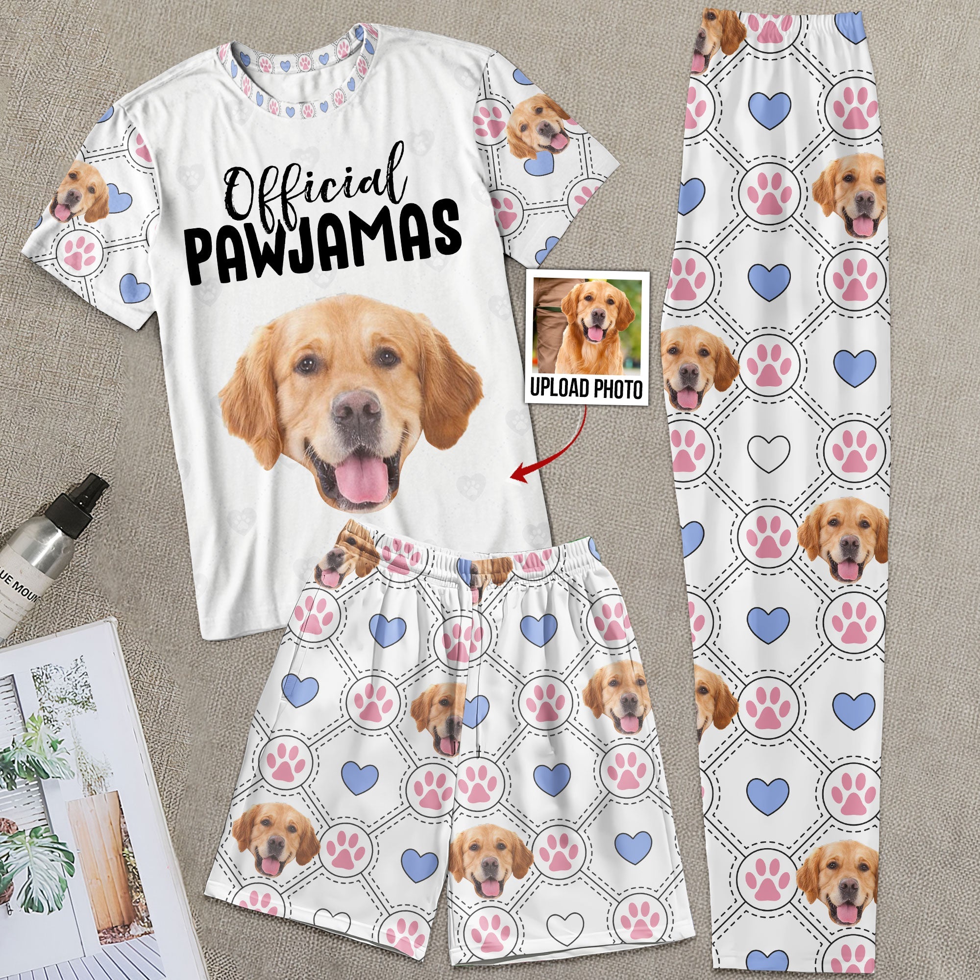 Show your love for your pet and your sense of humor with these funny and cute personalized photo pajamas. These pajamas feature a design of 'Official Pawjamas' on the pajama shirt, along with your name. You can also customize the pajama shorts with your pet's photo., making this a truly unique and personal gift.