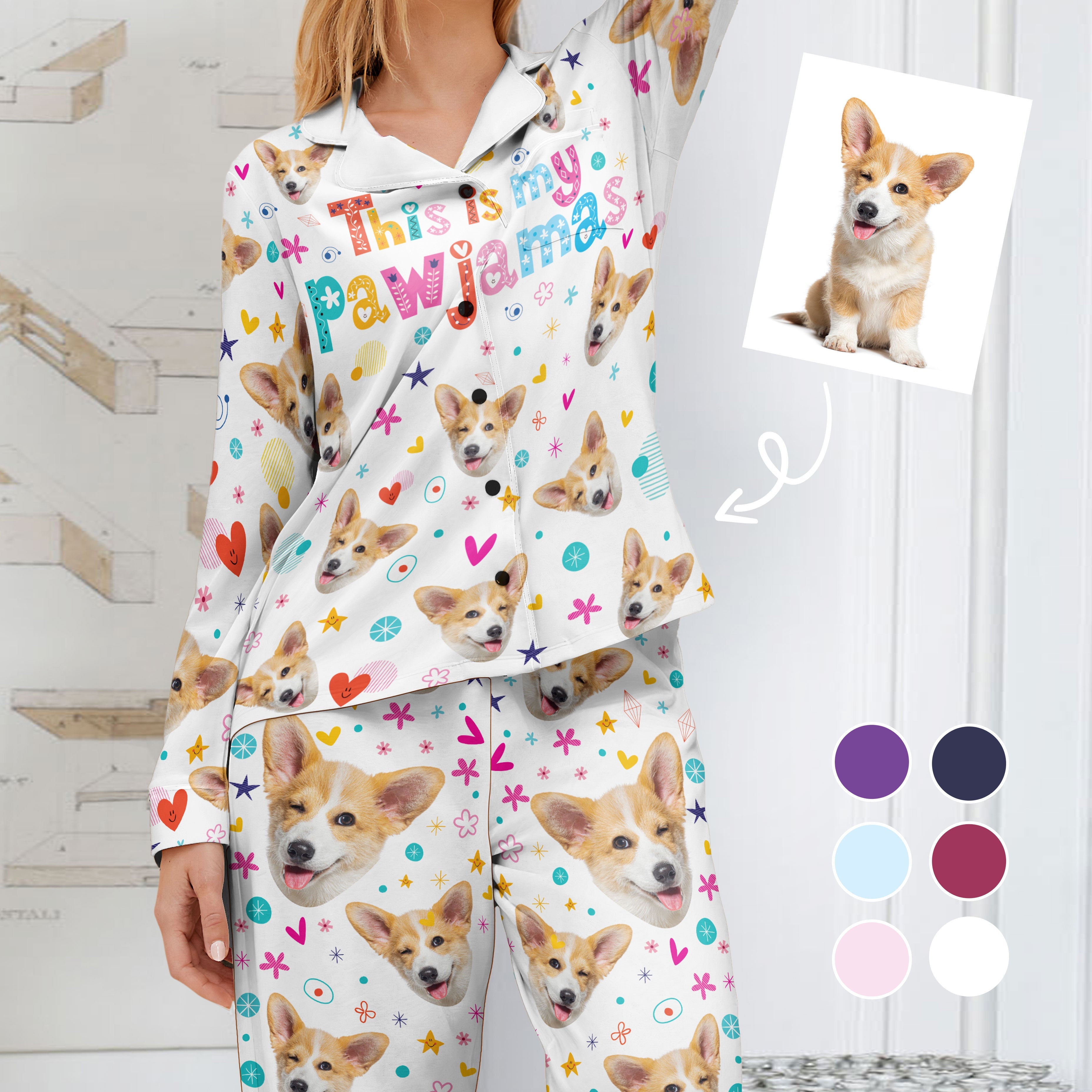 Indulge in the ultimate pet-lover experience with our 'This Is My Pawjamas' Custom Funny Dog Cat Pets Face Pajamas. Tailored for dog moms, cat moms, and devoted pet parents, these personalized photo pajamas bring a touch of whimsy to your bedtime routine.