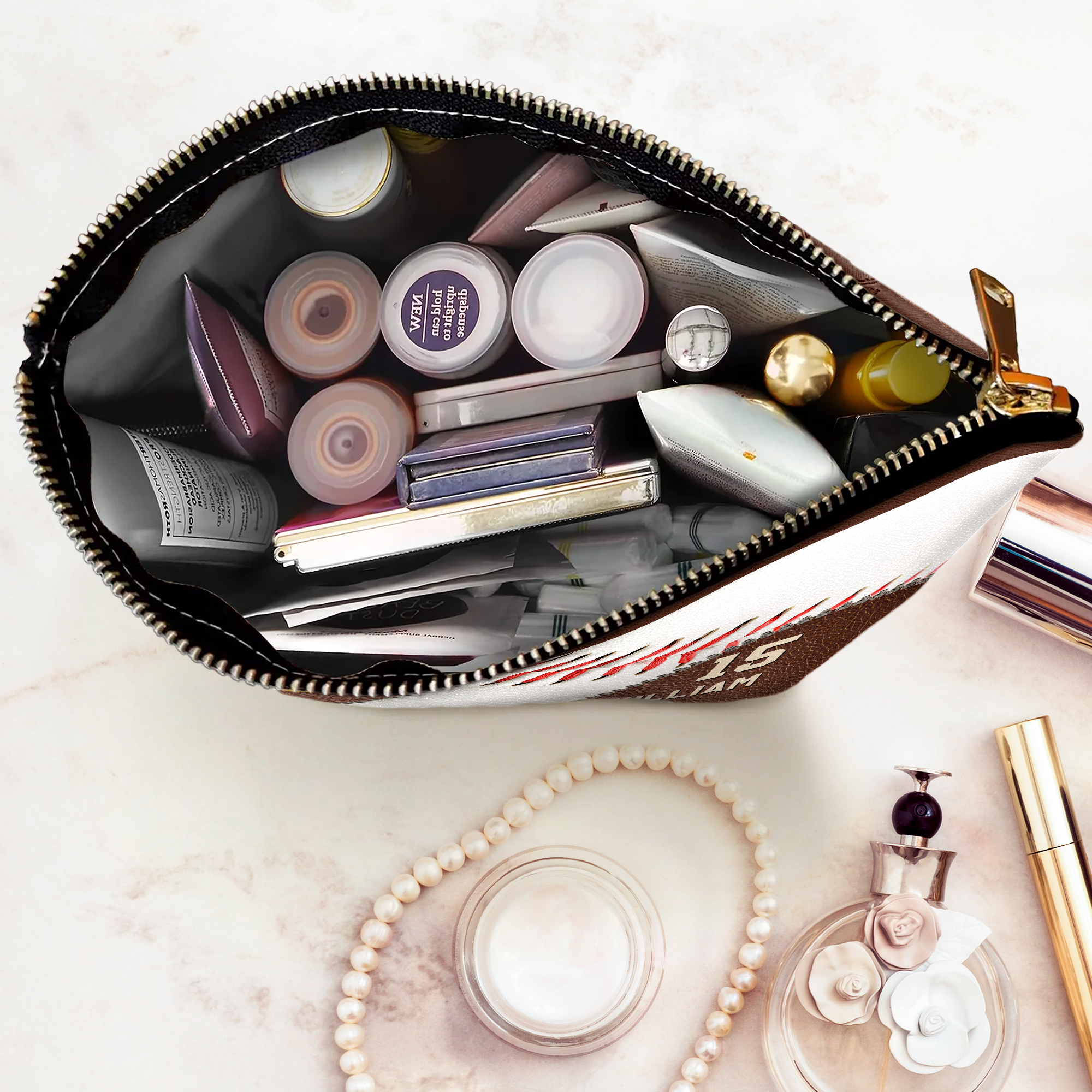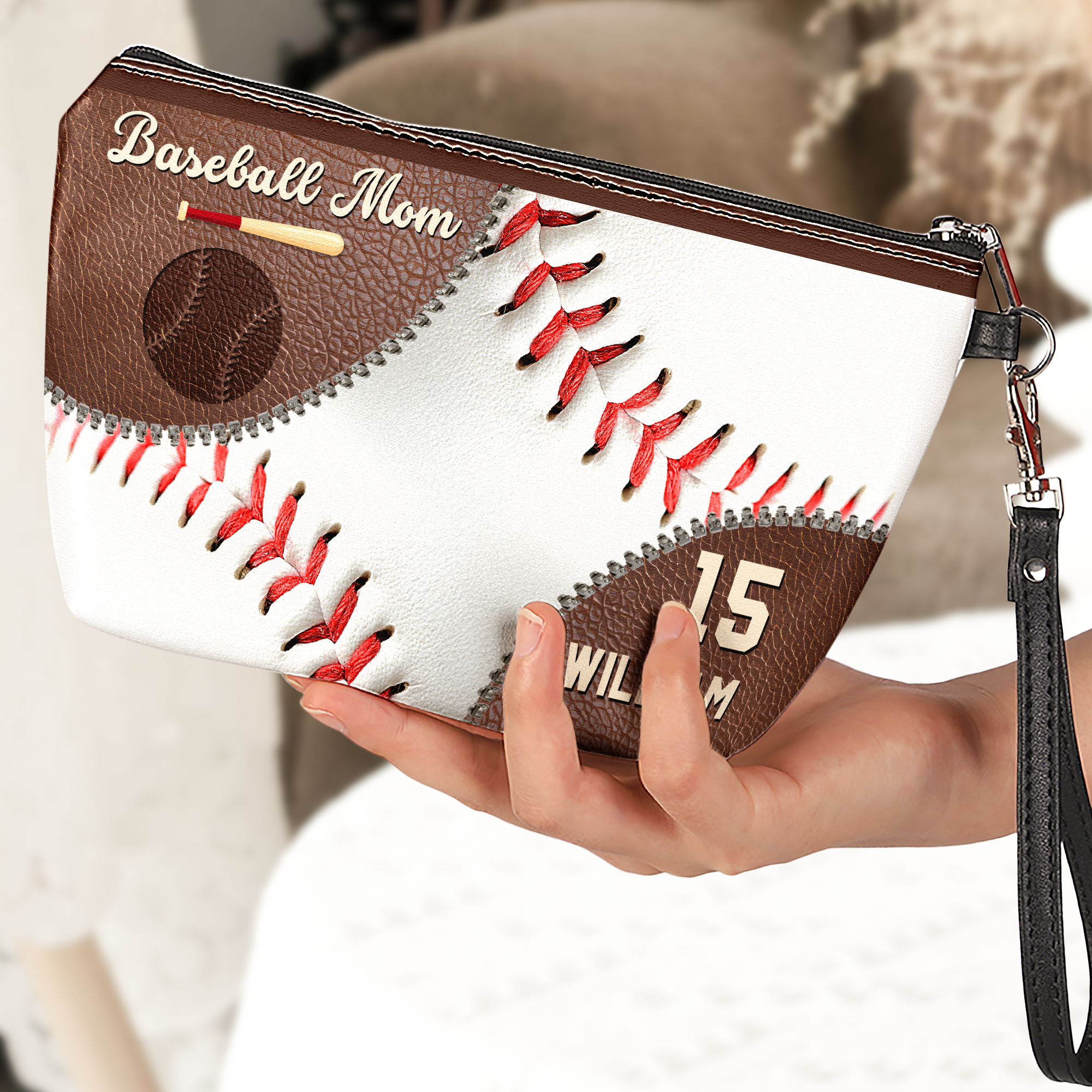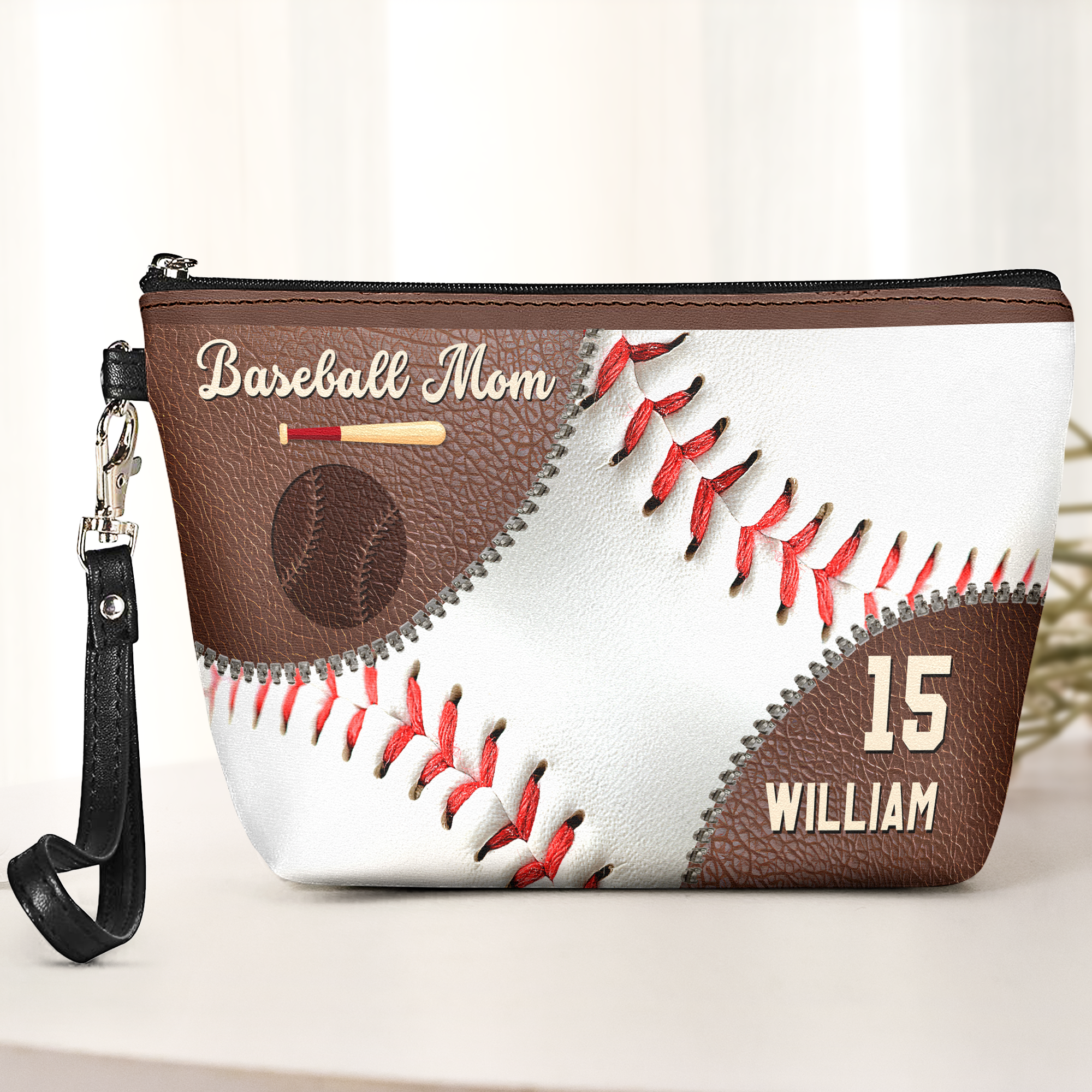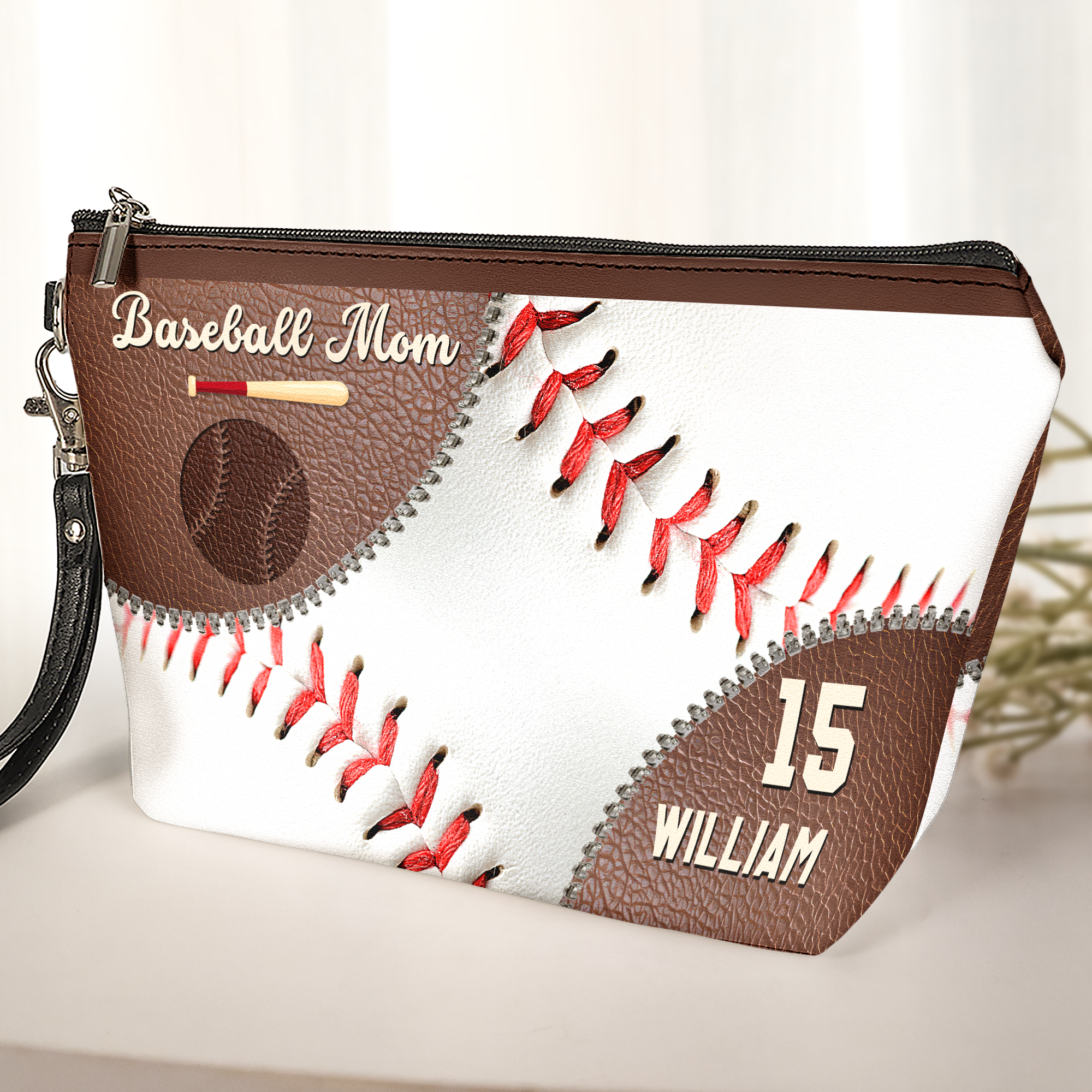 Perfect for storing makeup or game-day essentials, this practical and stylish bag keeps her organized while showcasing her pride in her baseball star.