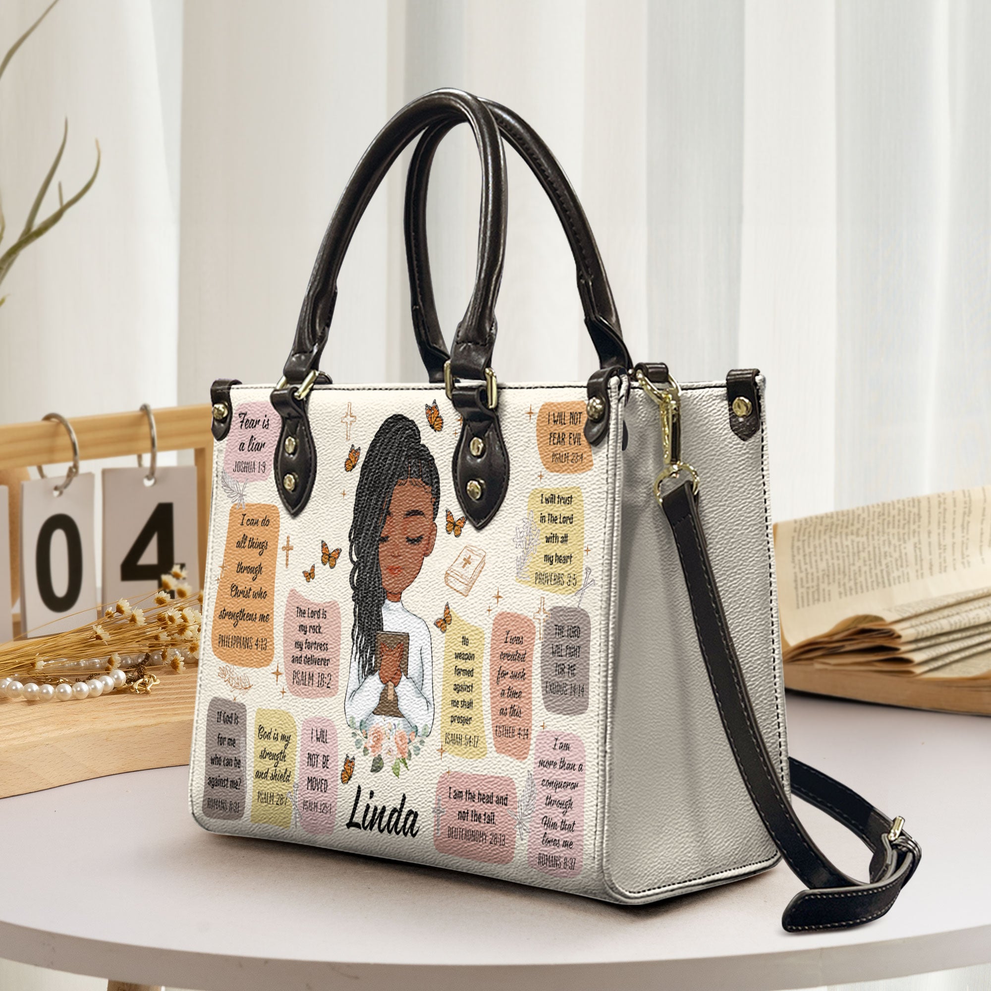 Embrace faith with our Christian Bible Verse Affirmations - Personalized Leather Bag. This stylish gift is perfect for women who seek inspiration from God's words. Carry it with grace and style, cherishing the uplifting affirmations on its surface. A constant reminder of faith and love. Ideal for birthdays and special occasions. Personalized Leather Bag, a heartfelt addition to our collection of Christian gifts for women. This beautifully crafted bag is the perfect birthday gift for Christians and a wonderful religious gift for women, including moms, daughters, and friends.