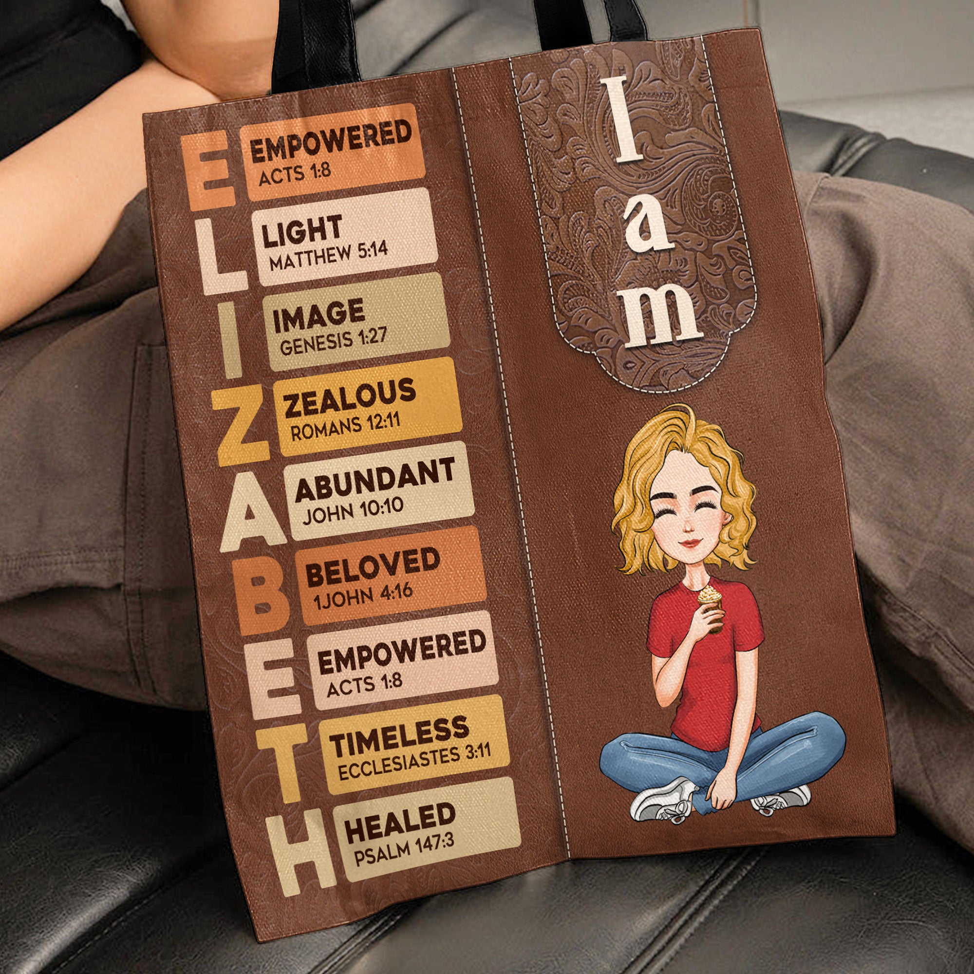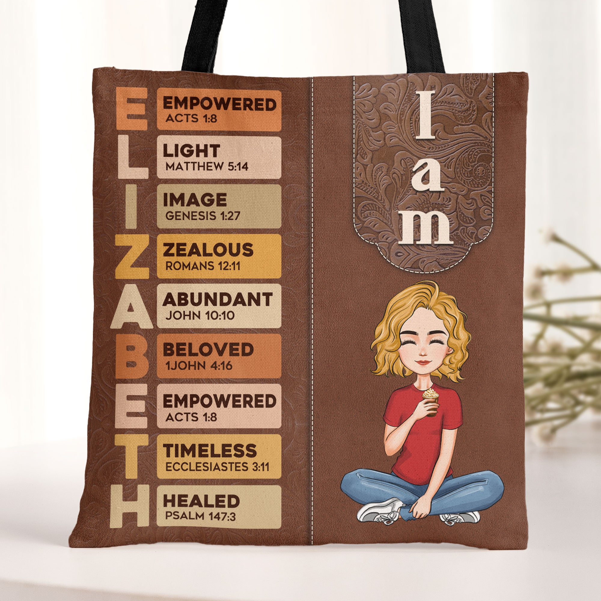 Treat yourself to our Personalized Tote Bag featuring empowering 'I Am' affirmations! This stylish and functional tote is perfect for carrying your essentials while reminding you of your strength and individuality. Customize it with your favorite affirmation or your name to create a unique self-gift that inspires confidence every day. Made from durable materials, this tote is perfect for shopping, work, or everyday use. Whether you're running errands or heading to the gym, this personalized tote bag combines practicality with a positive message, making it a wonderful addition to your collection or a thoughtful gift for yourself!