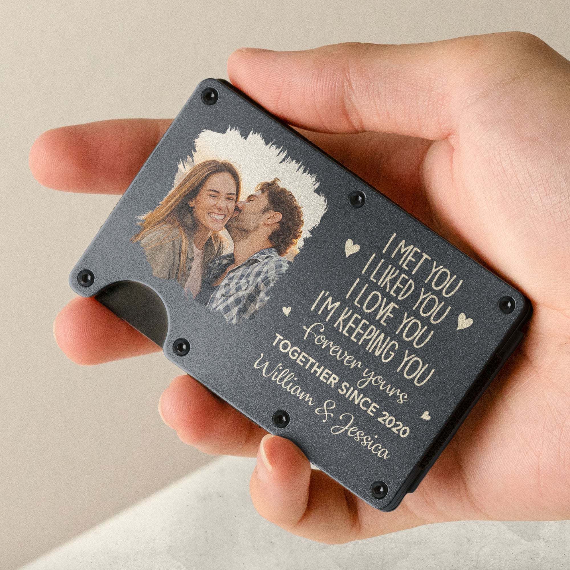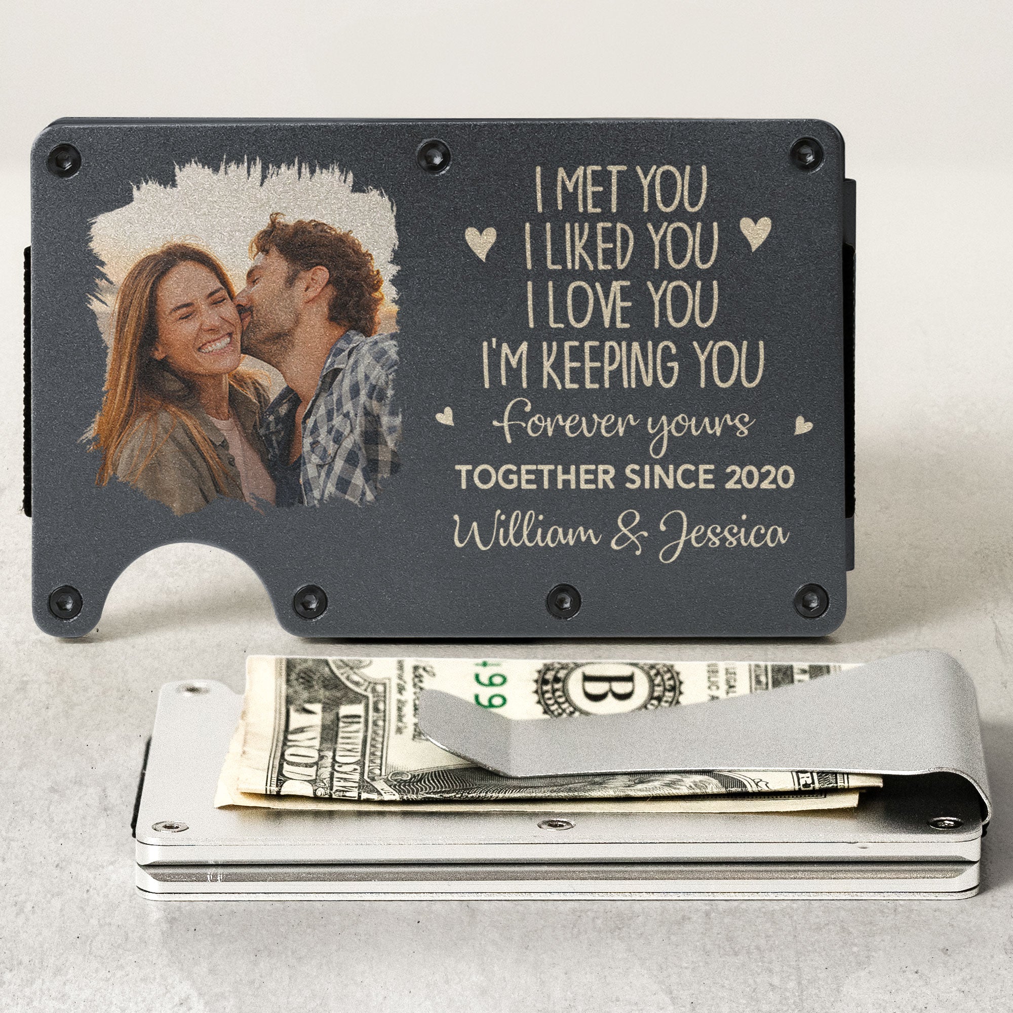 Surprise your partner with a unique metal card holder that celebrates your love story! This stylish accessory features a photo upload option, allowing you to personalize it with a cherished memory. Perfect for couples, it showcases the heartfelt message. It's captures the essence of your relationship and serves as a daily reminder of your commitment. Crafted from durable metal, this card holder is not only practical for everyday use but also a sentimental keepsake. Ideal for anniversaries, birthdays, or just because, this metal card holder is a beautiful way to honor your journey together and keep your love close at hand!