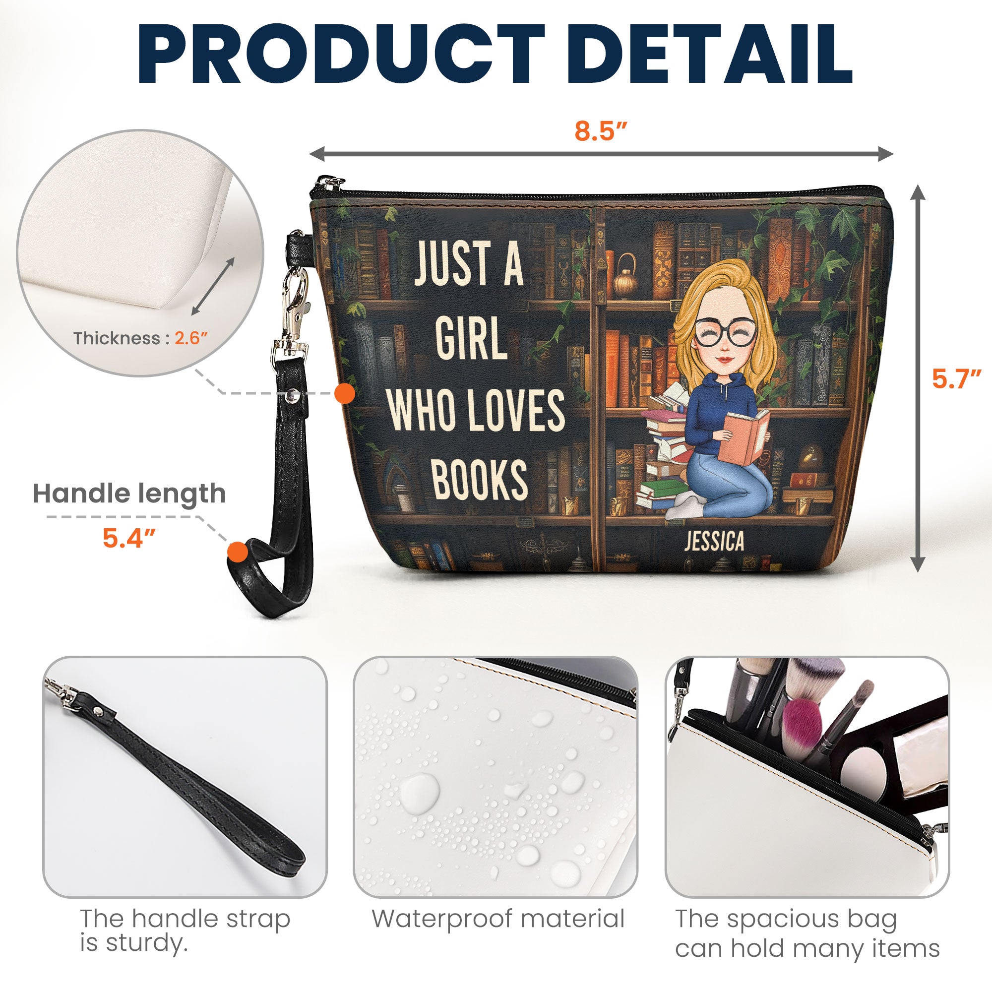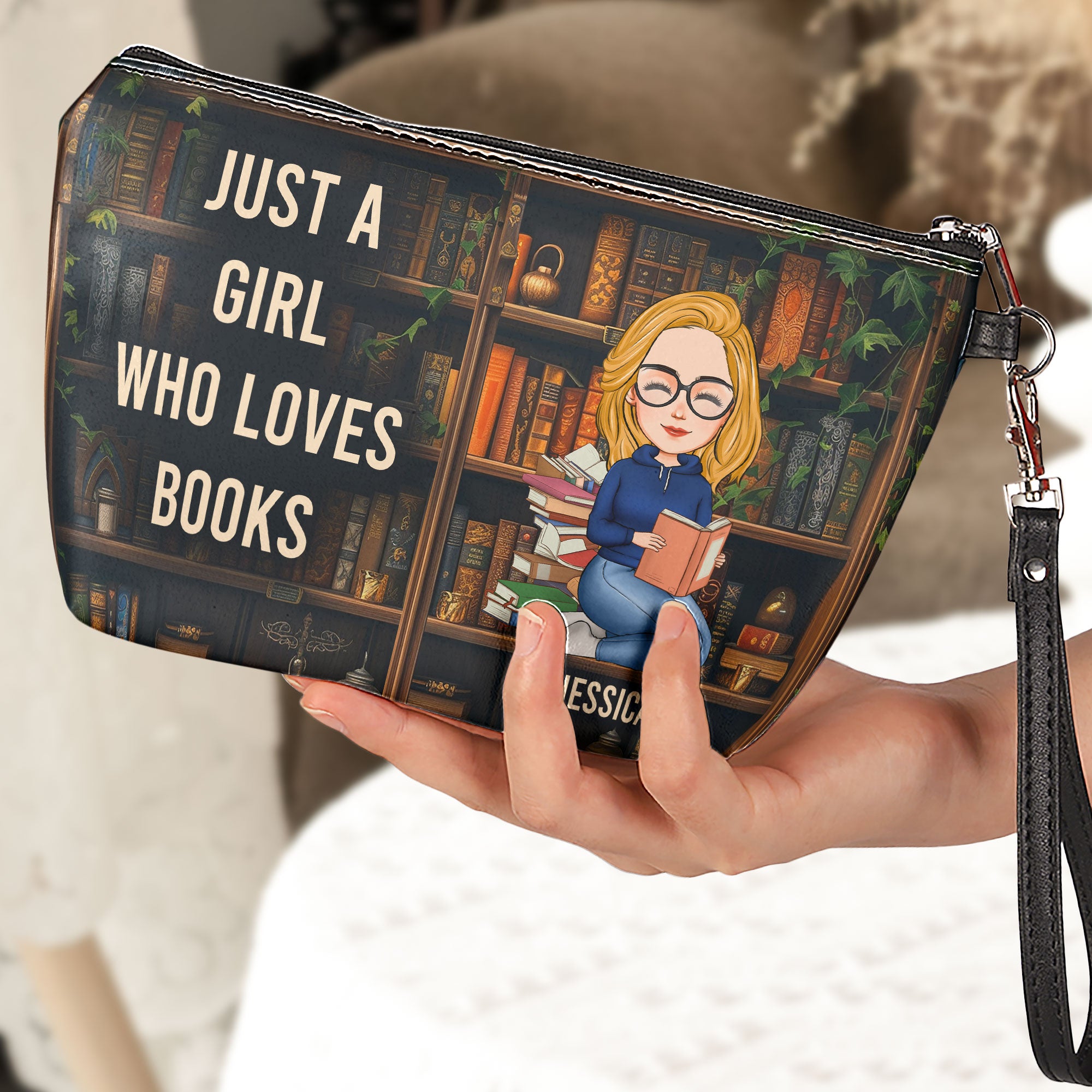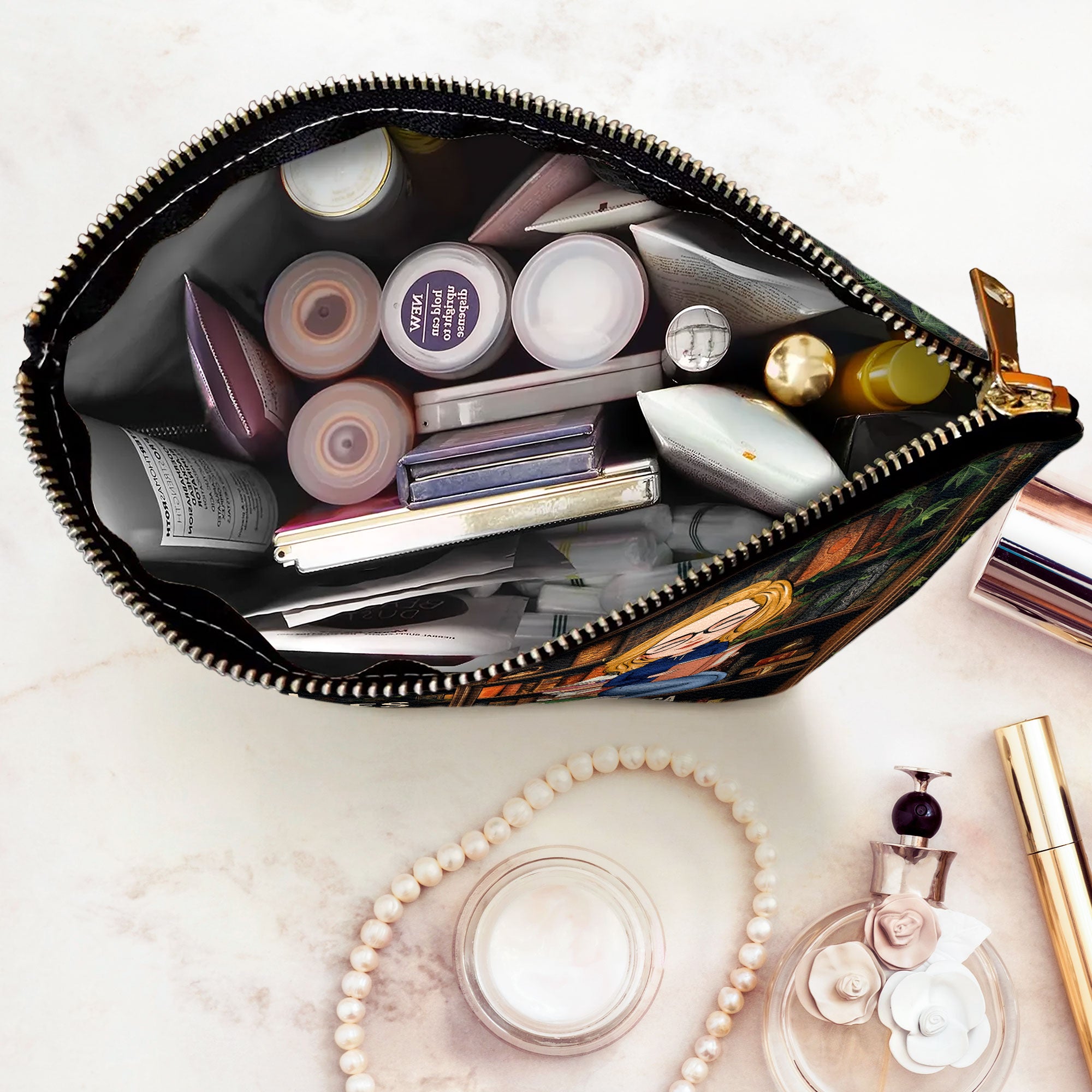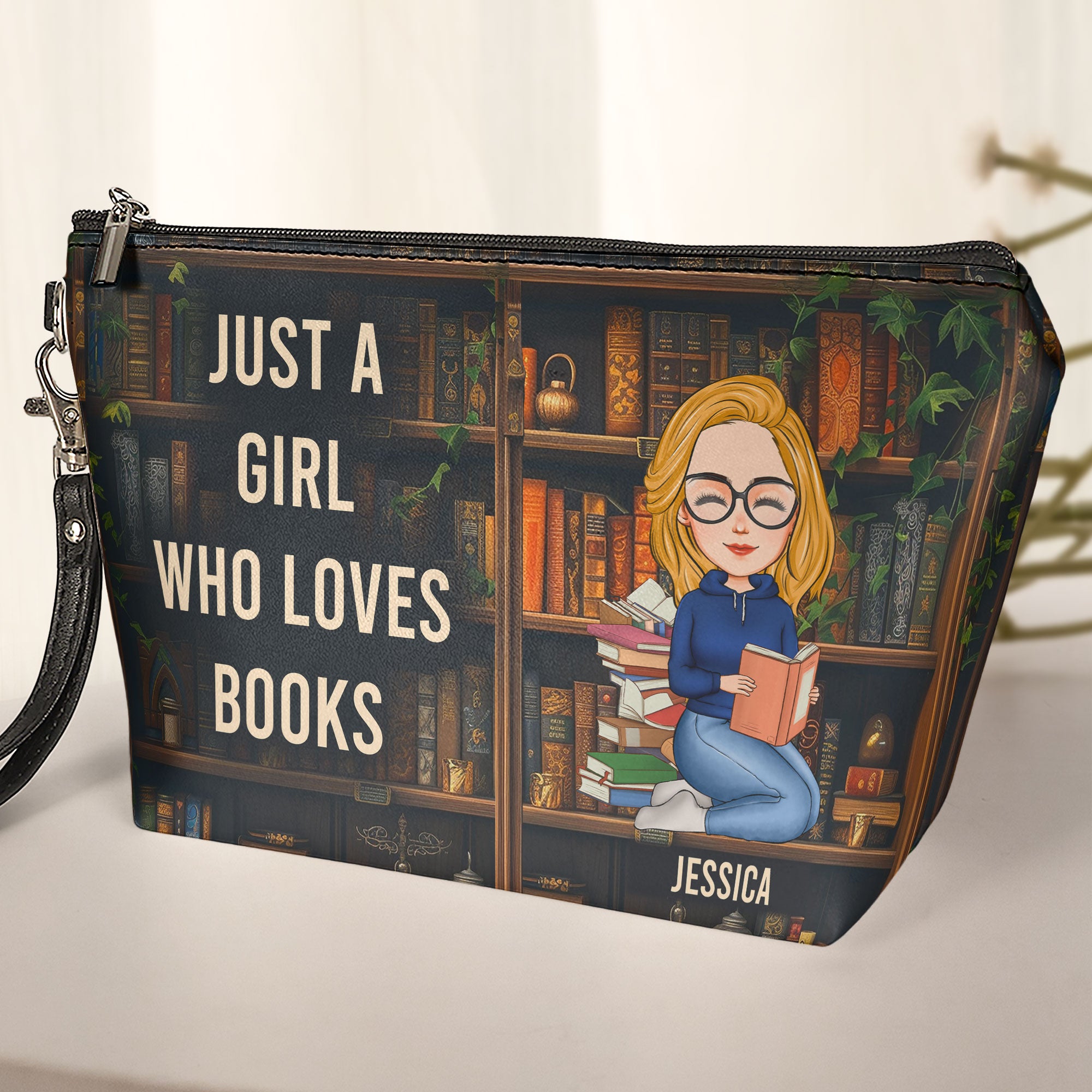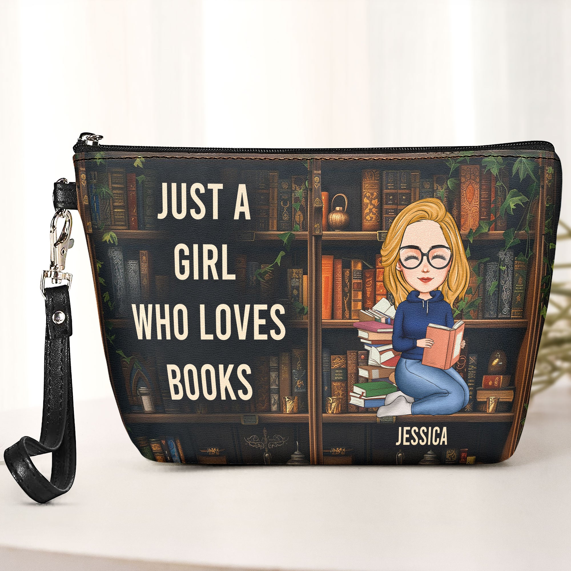 Delight the bookworm in your life with this personalized cosmetic bag, the perfect accessory for anyone who adores books! Whether for a birthday or any special occasion, this thoughtful gift combines practicality with a touch of literary charm.