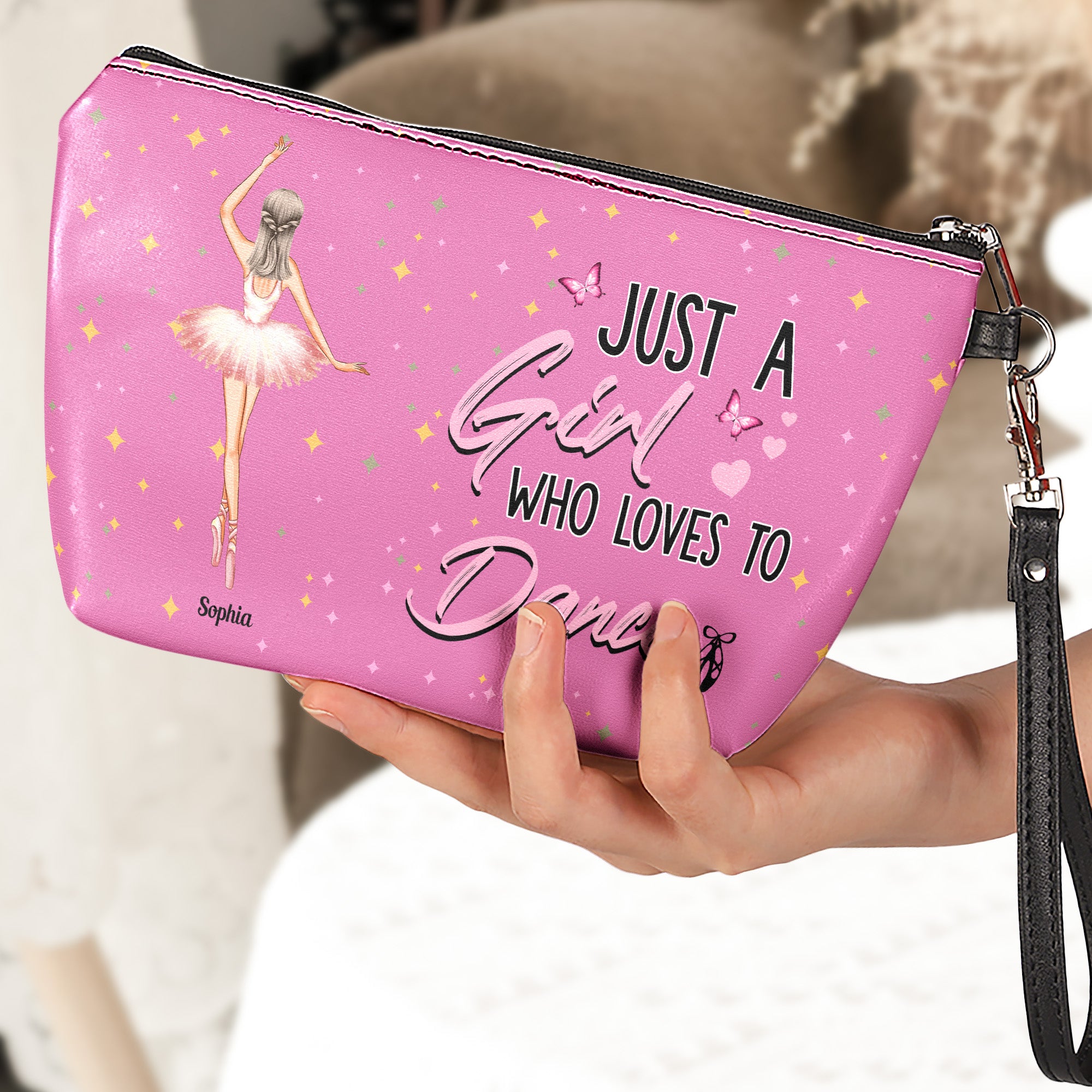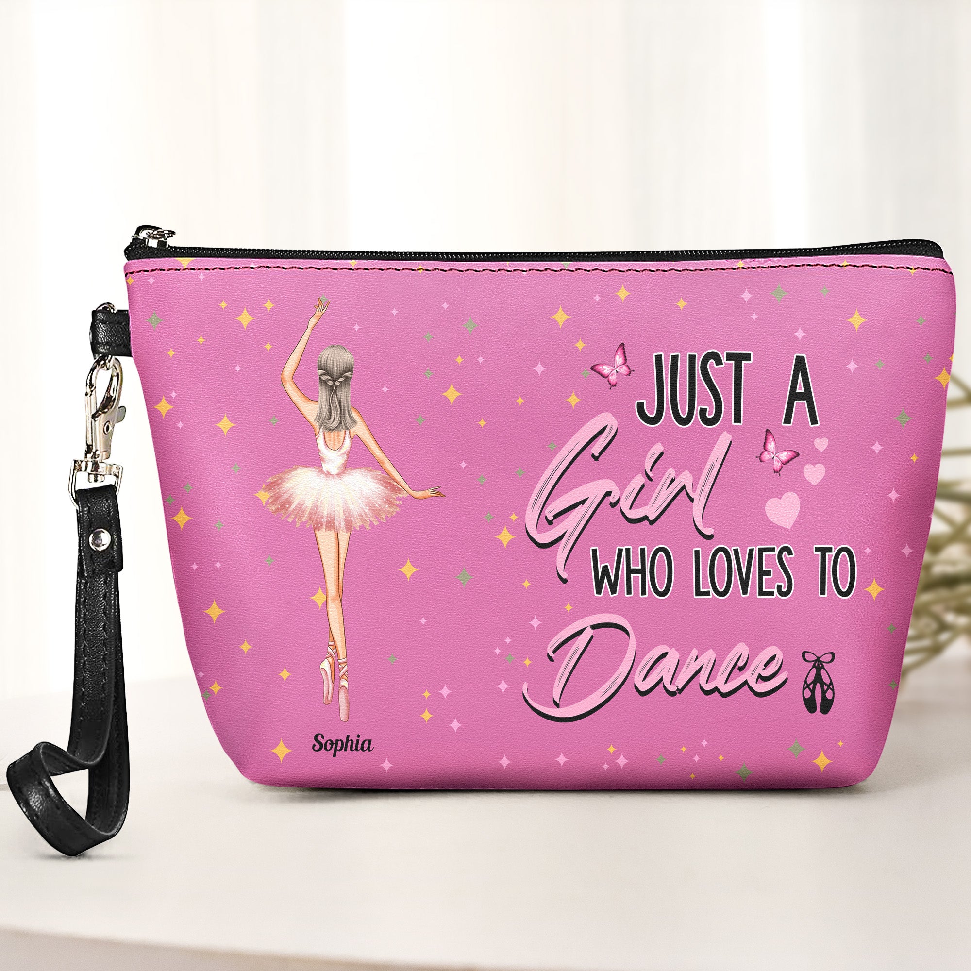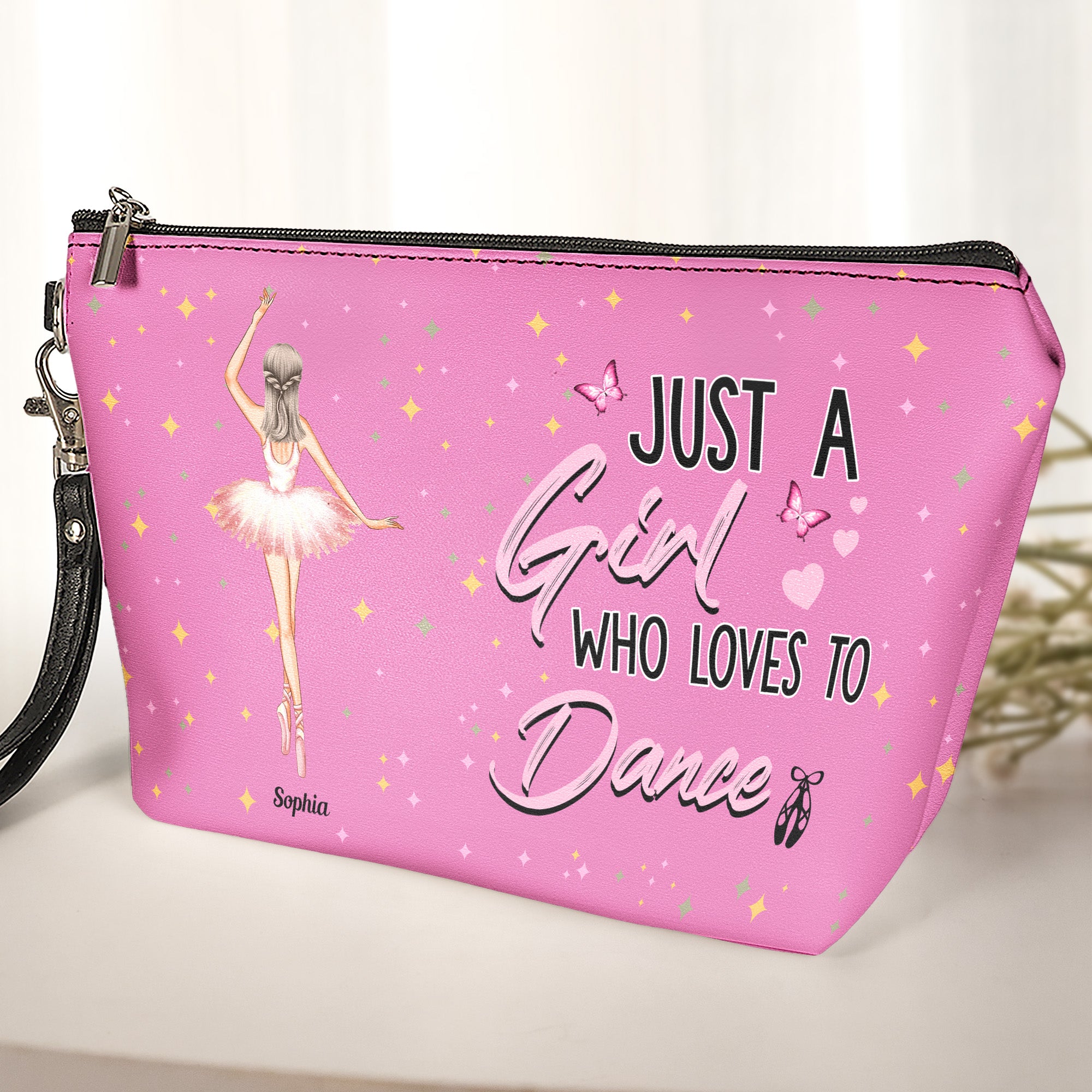 Just A Girl Who Loves To Dance - Personalized Cosmetic Bag. Celebrate her passion for dancing with this Just A Girl Who Loves To Dance Personalized Cosmetic Bag. Perfect for keeping her essentials stylishly organized, this bag is tailored for ballet enthusiasts and dance lovers alike. With its elegant design, you can customize it with her name for an extra-special touch, making it a delightful gift for your daughter or any young dancer.
