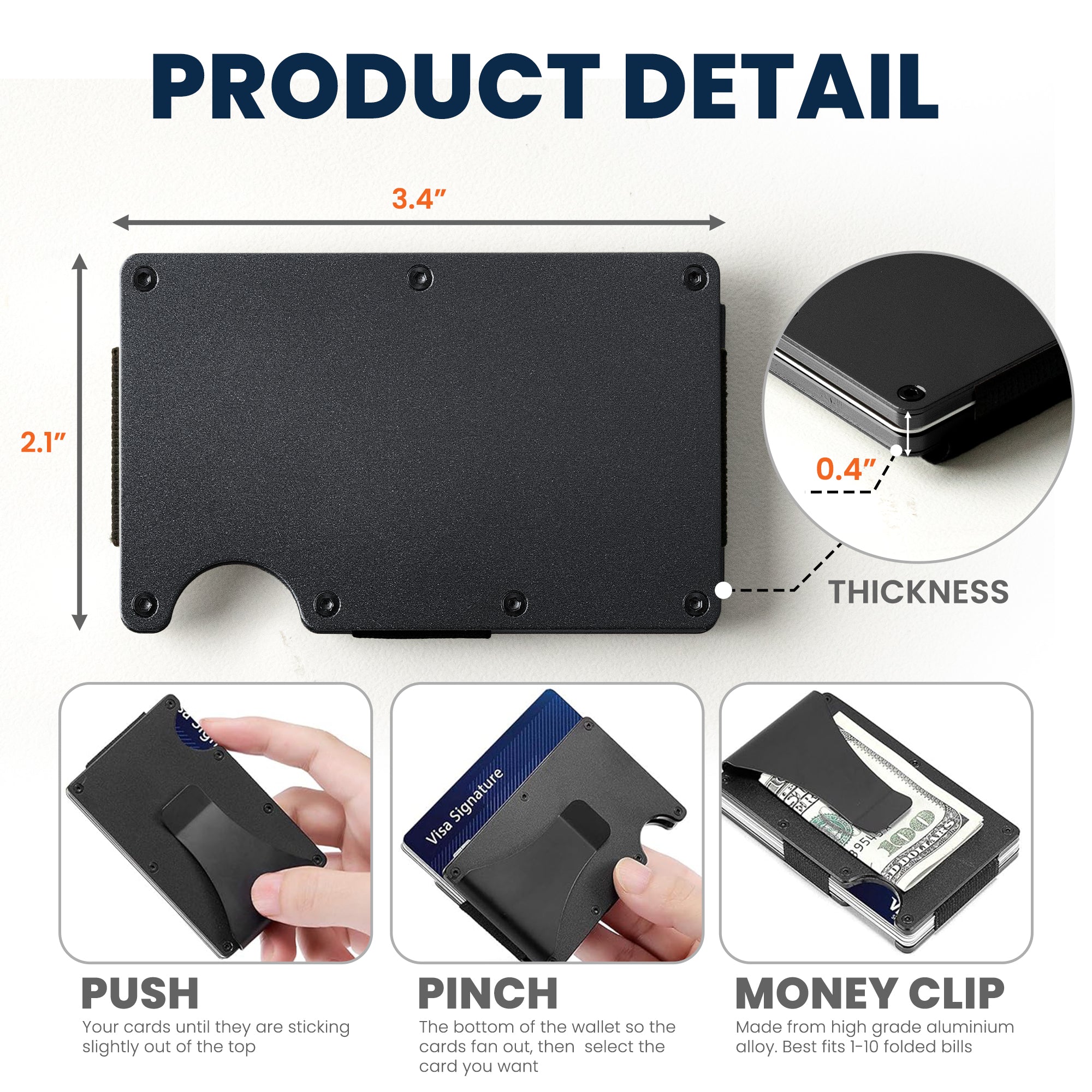 + Secure Clip & Elastic Band: The metal money clip securely holds cash and cards, attachable to pockets or belts. Ultra-elastic bands allow for increased card capacity.
