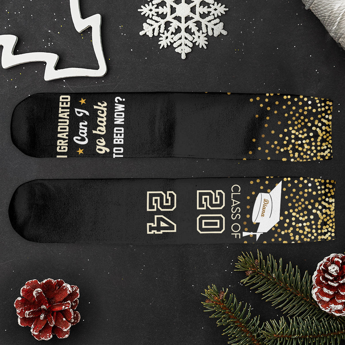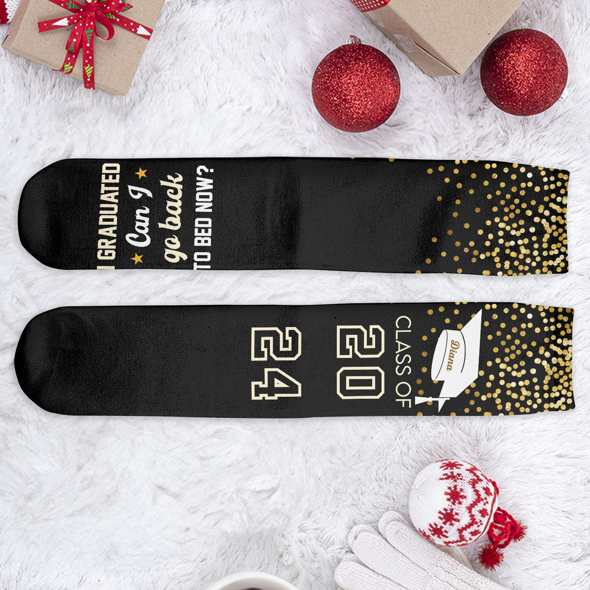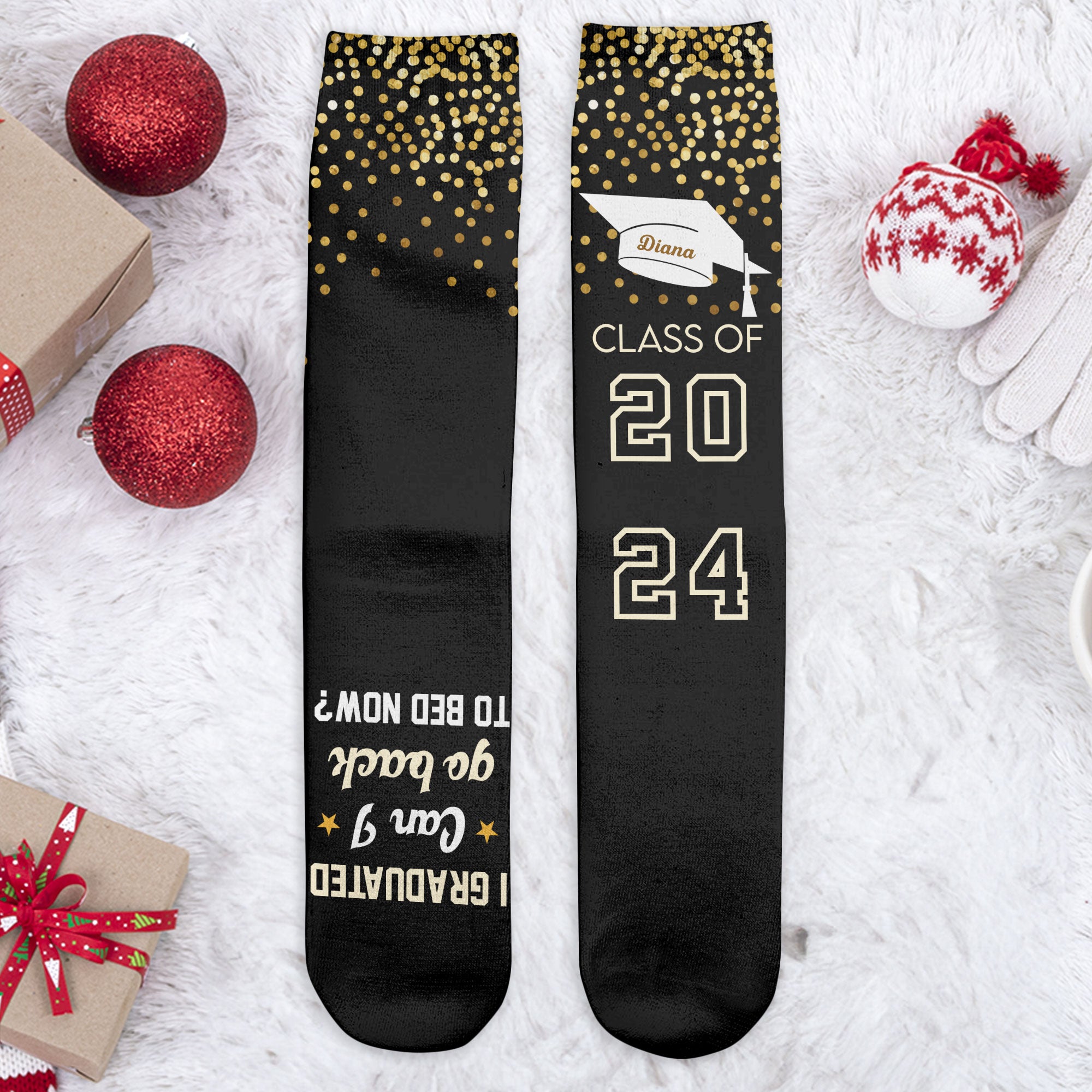These funny socks make great gifts for your family, including your children, grandkids, sister, brother, son, and daughter who graduated this year. They're also perfect for your friends or anyone you know that got their degree. Get into the festive spirit with our socks! These crazy socks are great as gifts that arrive before Christmas, stocking stuffers, the best Secret Santa gifts, holiday gifts, Xmas gifts, Christmas presents, and more.