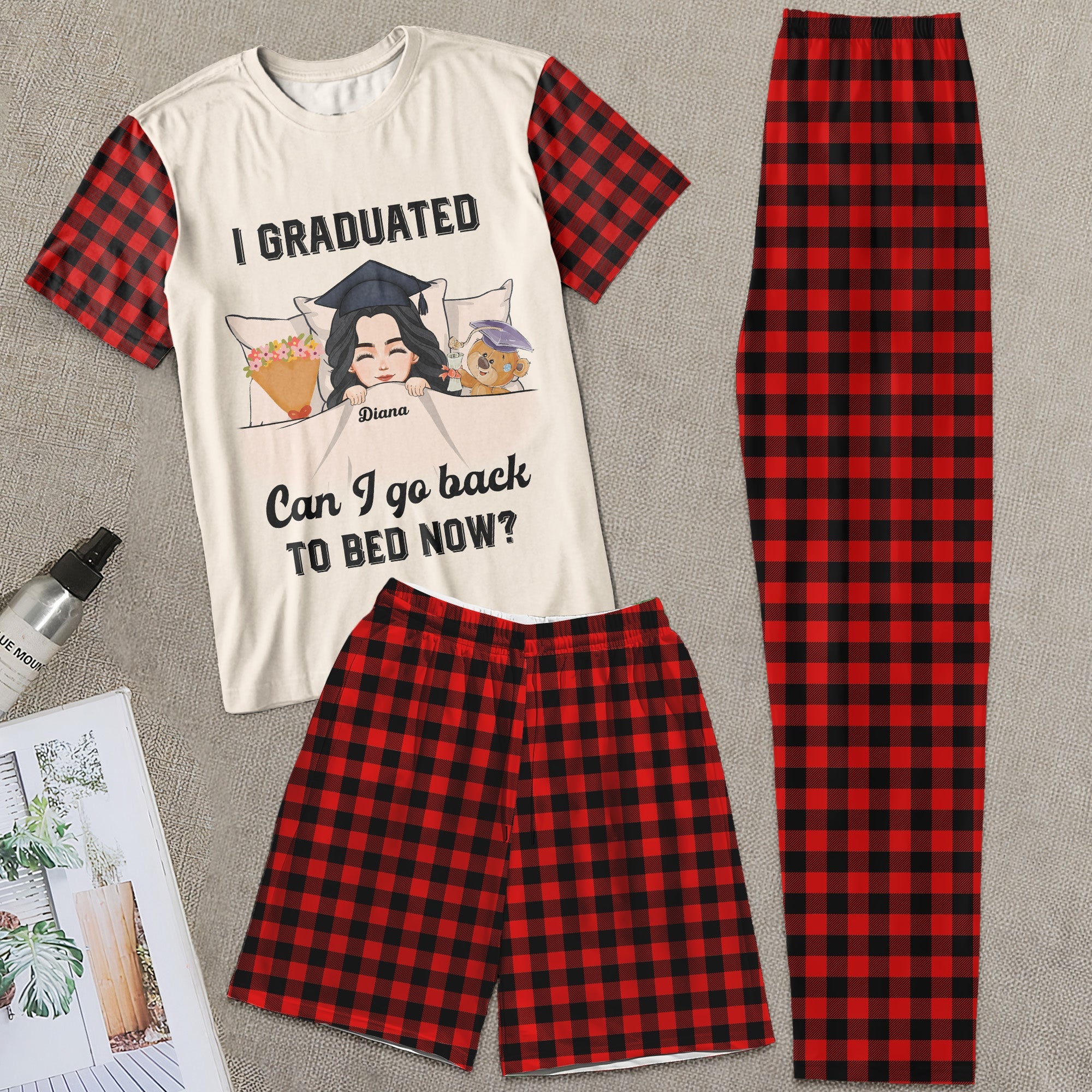 • I Graduated Can I Go Back To Bed Now - Personalized Pajama Shorts Set
