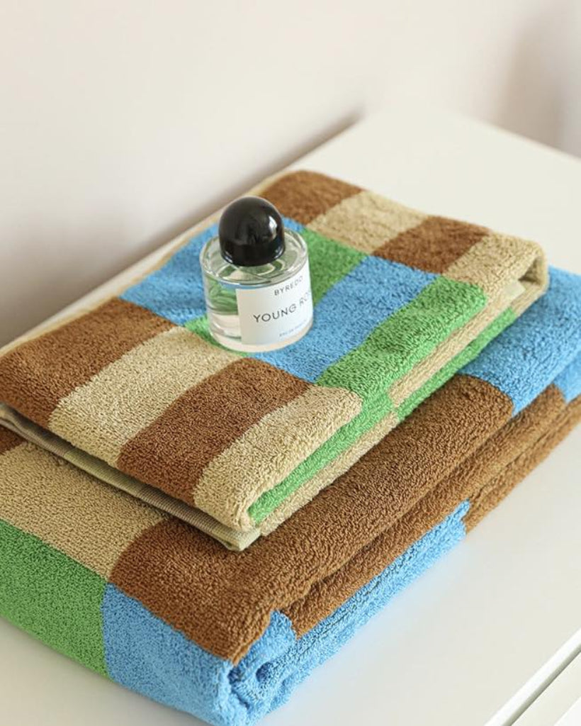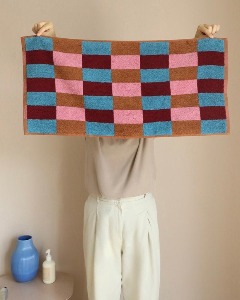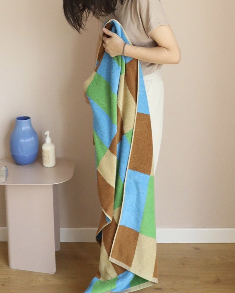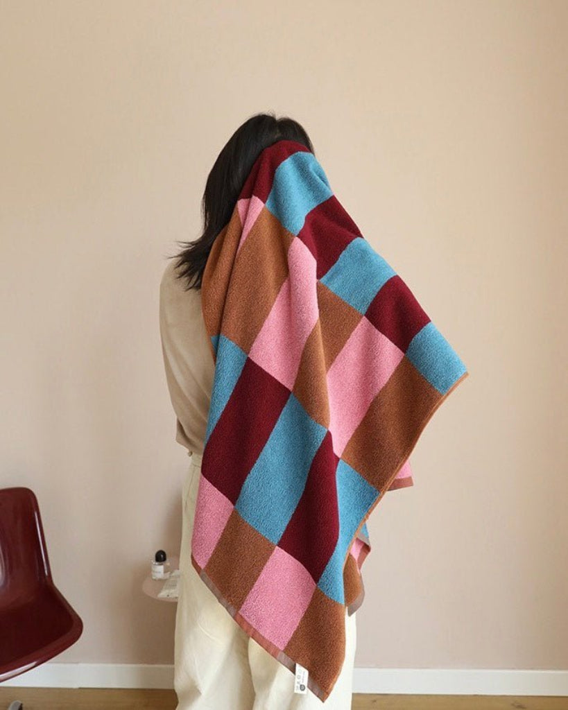Step out of the shower and into luxury with this dopamine checker bath towel. Featuring classic checker infused with a collision of catchy colours, these playful bath towels are made with 100% organic combed long-stapled cotton, making them impossibly soft, plush, and incredibly absorbent