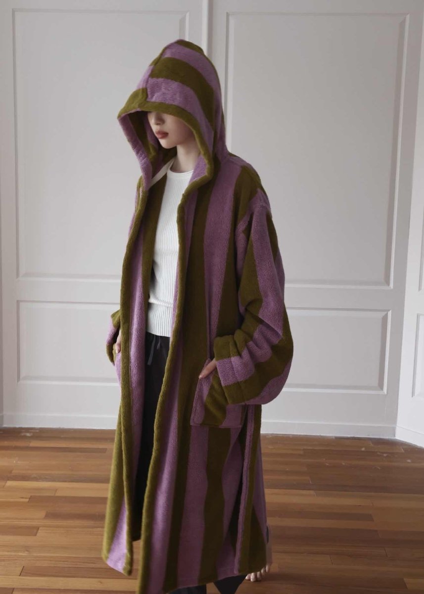 Made for lounging in luxury, these trendy, refreshing bath robes are constructed in spacious fits for comfort after bathing and give you a warm hug after a shower or bath. The vibrant stripe design would add