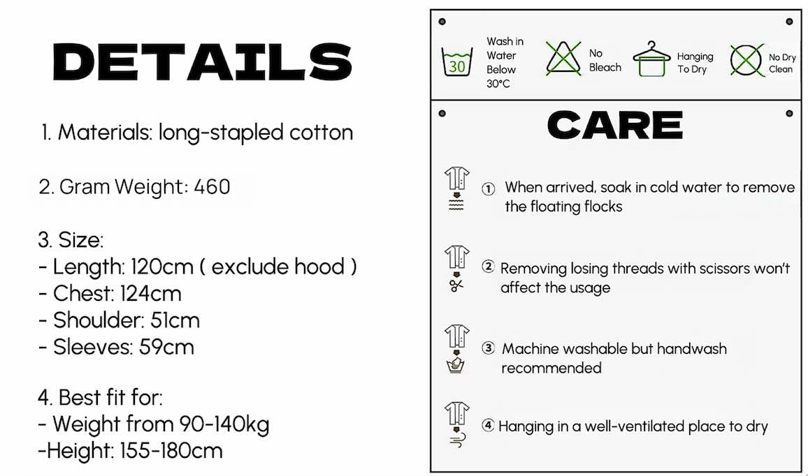 With excellent water absorption and fast drying capabilities, this robe is perfect for everyday use. The reactive printing and dyeing process ensures that the colors stay vibrant wash after wash. Plus, our robe is methanal, Aromatic amine and fluorescent agent free, making it a safe and healthy choice for you and your family.