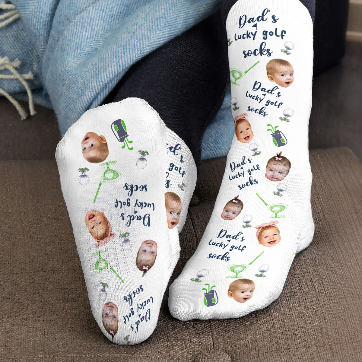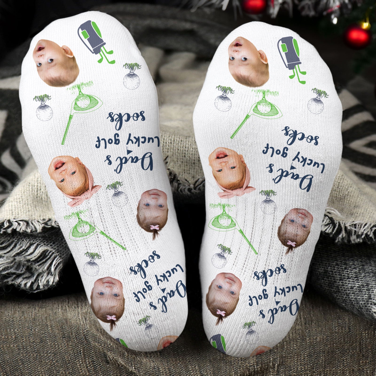 Surprise Dad with custom socks featuring his kids' photos and a fun golf-themed design. Made from soft, breathable fabric, they’re perfect for all-day comfort on and off the course. These one-of-a-kind socks make a great Father’s Day, birthday, or just-because gift for Best dad by par. Simply upload your favorite pictures, and we’ll create a unique keepsake he’ll love. Order now for a gift that scores a hole-in-one!