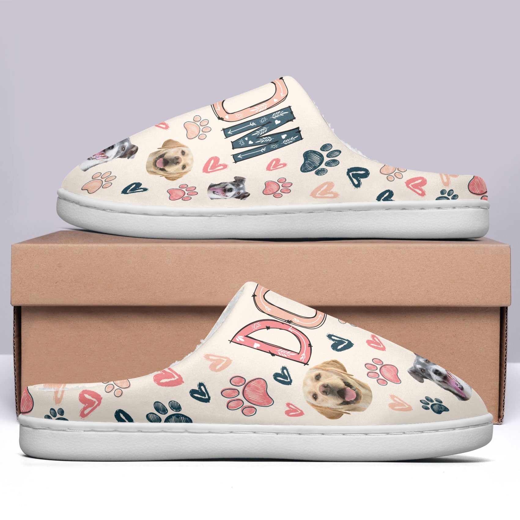 They're made from soft velvet and come in a variety of colors. The slipper's design can be customized with your wife's favorite photo of her favorite furry friend.