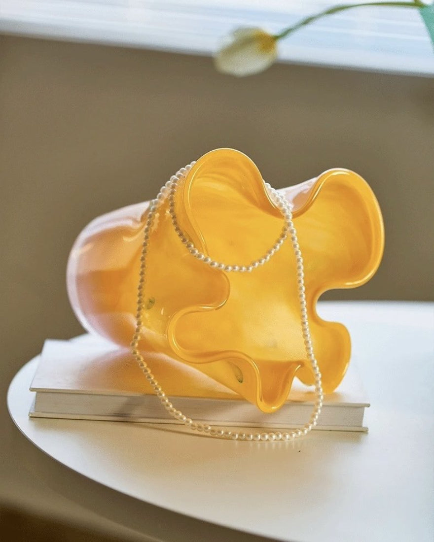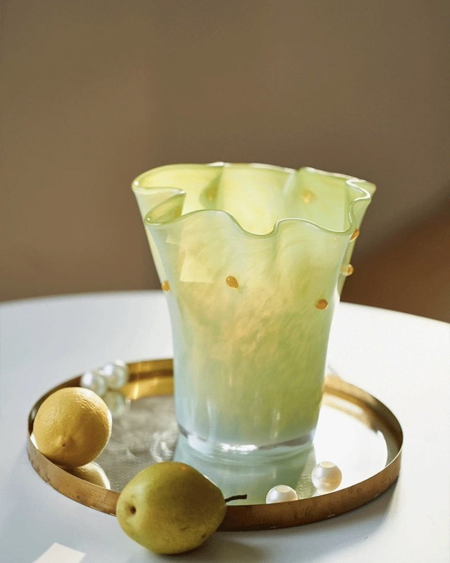 Inspired by the beauty of natural world, these handblown cute whimsical vases feature dynamic wavy rims and bold vibrant colours.